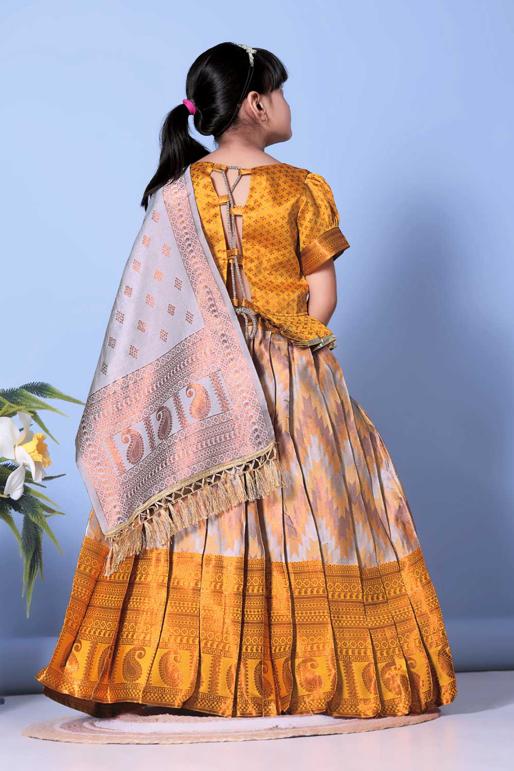 Ideal for weddings, festivals, receptions, and family functions, this jacquard lehenga choli set brings timeless ethnic elegance to your little one’s wardrobe.